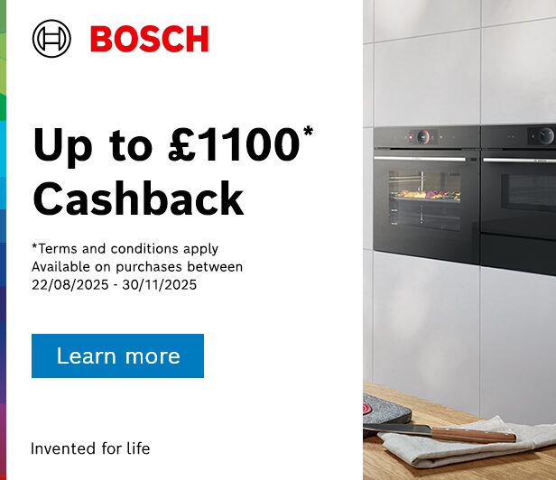 - £1,100 cashback will be offered with a purchase of 7 qualifying Bosch or NEFF kitchen appliances including an oven.